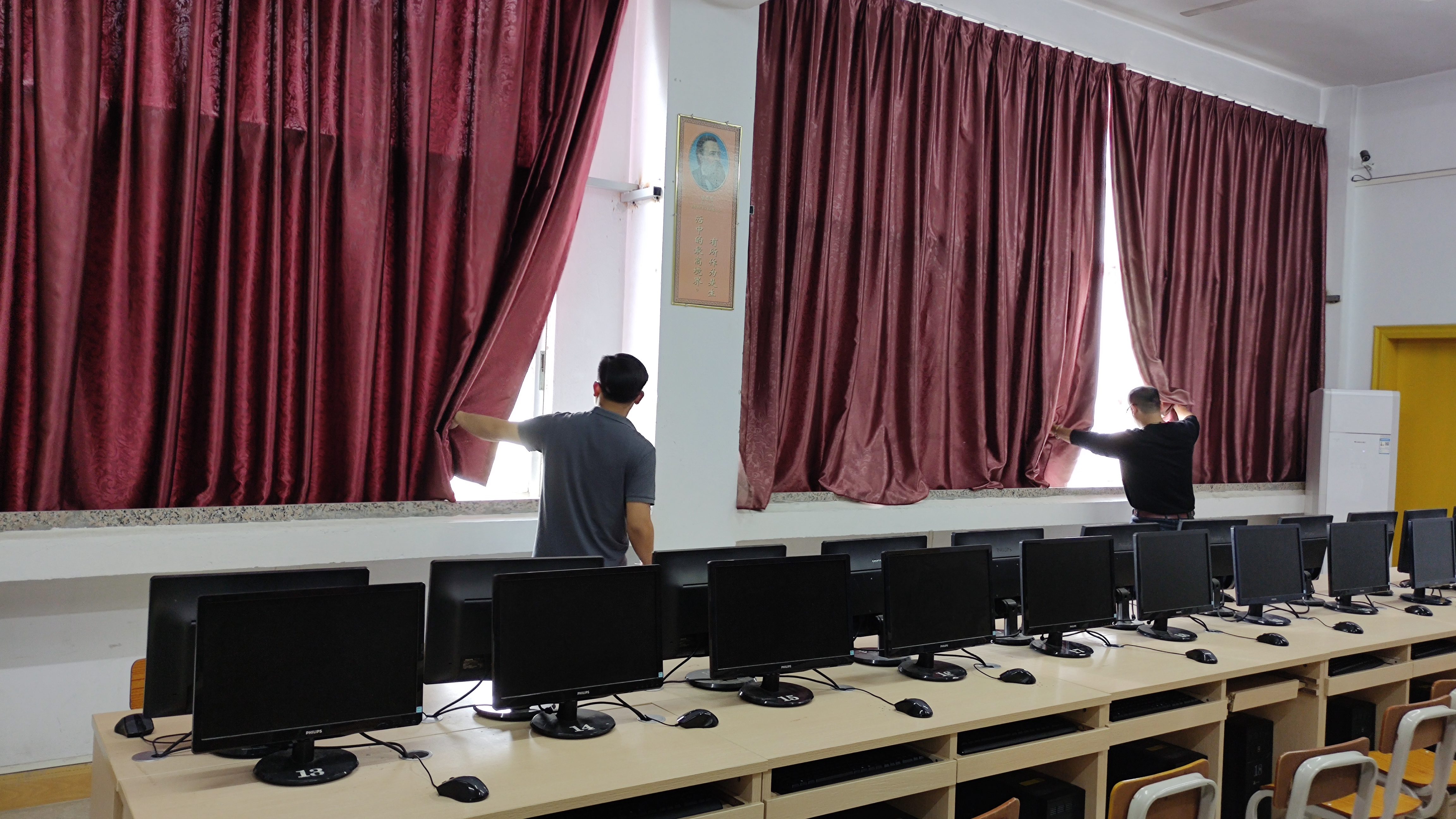 为落实《教育部办公厅关于组织开展2023年度高等学校实验室安全检查工作的通知》,进一步做好学院教学机房安全工作,切实杜绝和消除教学机房安全隐患,在学院领导及部门领导的指导安排下,网络与信息化中心(以下简称网信中心)黄炜林、顾楚荣和罗密伟进行了节前安全隐患排查。主要对16间教学机房里的用电设备进行检查,确保用电安全。同时对门窗关闭、防风防火防盗等注意事项进行了检查。