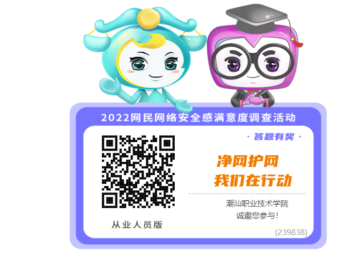 2022年网民网络安全感满意度调查活动开始啦~这项活动可以让我们的网络空间更加健康哦~快来填写问卷留下你对目前网络的看法吧~还可能拿到本期活动的奖品哦!!!!