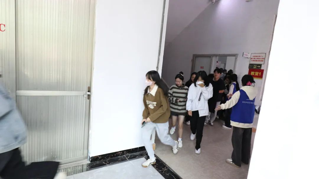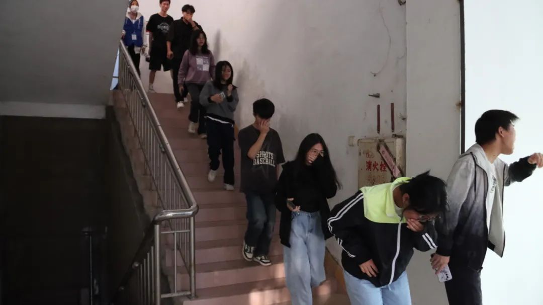 在学校科技楼开展了一场消防演习