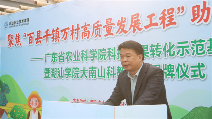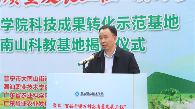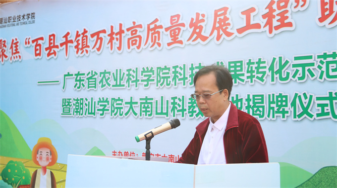 12月29日下午,潮汕职业技术学院、普宁市大南山街道和广东裕业农业发展有限公司举行广东省农业科学院科技成果转化示范基地暨潮汕学院大南山科教基地揭牌仪式。