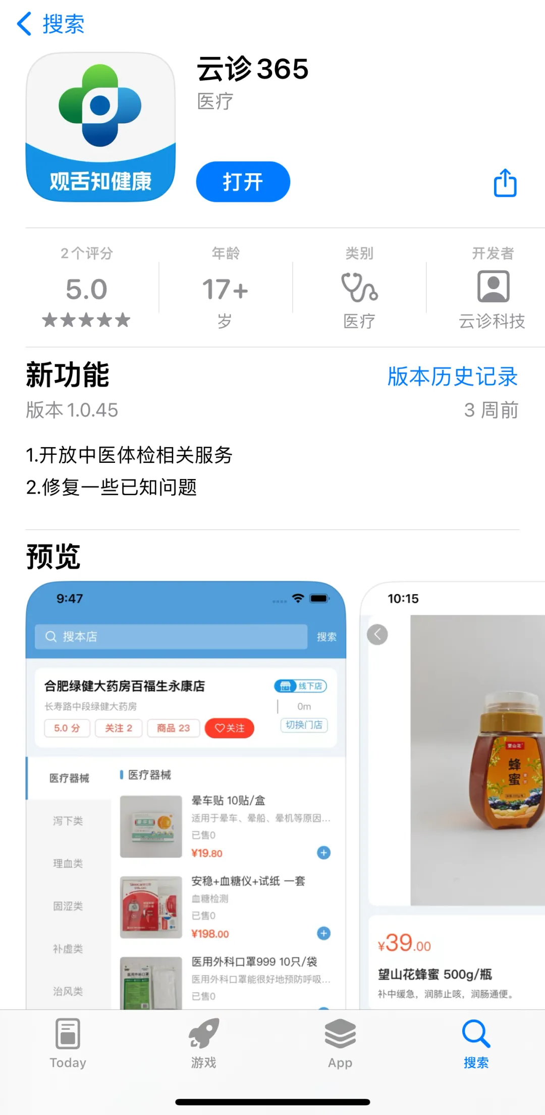 从手机“App Store”中搜索“云诊365”,下载打开。