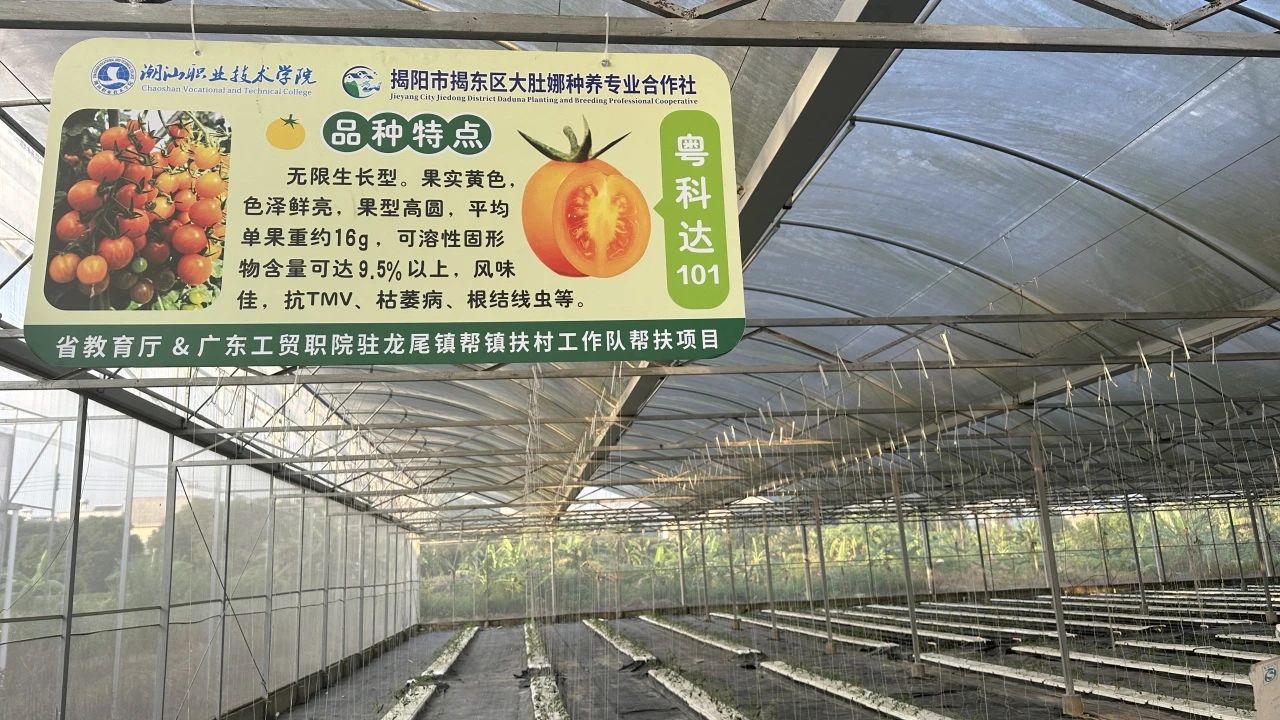潮汕职业技术学院携同广东省农业科学院设施农业研究所,共同打造了高明村科教实训基地和现代高效设施农业示范基地。该基地采用了专用樱桃番茄新品种、数智化水肥控制等先进技术,形成了一套高效的技术体系,并在基地内进行了试验、示范和推广。
